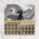 60e fête d'anniversaire avec un couple de danse unique silhouette clip art et charmant coeur de diamant rouge accroché sur une chaîne d'or. L'arrière - plan est décoré de papier argenté et d'un motif damassé doré relié par une ligne de nuggets dorés. Personnalisé avec votre message.