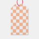 Étiquettes-cadeau à damiers carré pêche orange blanc géométrique