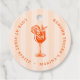Élevez vos cadeaux de fête de fiançailles avec cette étiquette « Coup de foudre au premier Spritz » de Redwood & Vine Design Co.—un clin d'œil ludique à la saison de l'Aperol spritz. Le design d'étiquette rond présente une illustration audacieuse de cocktail orange sur un fond rayé couleur pêche avec un texte personnalisable. Parfait pour attacher à des mini bouteilles, des bougies ou des cadeaux de fête, il ajoute une touche festive et élégante à votre célébration. Idéal pour les fêtes d'été, les soirées à thème italien ou pour toute future mariée pétillante.