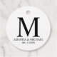 Une élégante marque de faveur de mariage comporte monogramme avec le nom de la mariée et le nom du marié et la date du mariage en noir classique serif style police sur arrière - plan blanc.