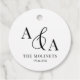 Customisez cette élégante étiquette de faveur de mariage à l'aide d'esperluettes et d'initiales. Inclure les détails de votre mariage. Ce design classique en noir et blanc est une belle option pour les mariage formels toute l'année.
