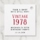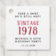 Amusant fête préférez les étiquettes pour son 50e anniversaire. Personnalisez "Take a Shot He's Still Hot" et "Vintage" si désiré, son année de naissance, son nom et la date de fête d'anniversaire.