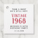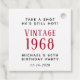 Drôle fête faveur tags pour sa célébration de 60ème anniversaire. Personnalisez "Take a Shot He's Still Hot" et "Vintage" si vous le souhaitez et ajoutez son année de naissance, son nom et la date de fête d'anniversaire.