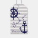 Ce design décoratif présente à la fois une ancre bleu marine foncé et une roue de navire à rayures grises et blanches. L'illustration nautique crée des étiquettes cadeaux modernes et uniques avec du texte personnalisé et des couleurs arrière - plans.