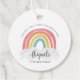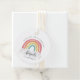 Couleur Rainbow Calligraphy Anniversaire de enfant Favor Tags présentent un arc-en-ciel dessiné à la main dans les tons rose, orange, jaune et turquoise et un nom de calligraphie tendance.