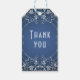 Elégante personnalisation mariage anniversaire argent privilégie le design de tag avec une bordure argentée élégante sur un arrière - plan bleu dégradé. Le texte est entièrement personnalisable.