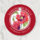 Conçu sur la base de mon aquarelle illustration florale de pavots rouges. J'ai peint ces charmants pavots rouges pleins de vitalité mais délicats de mon jardin, je devais les capturer car ils ne fleurissaient pas aussi longtemps. C'est un joli rappel d'une belle journée d'été, et l'espoir que vous pouvez en profiter aussi. Le design a un cercle extérieur rouge foncé avec des textes sur le dessus et le bas et convient soit pour l'anniversaire, anniversaire ou la douche nuptiale. Personnalisé avec vos propres textes dans mon magasin Zazzle.