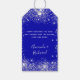 Étiquettes-cadeau Anniversaire royal bleu argent parties scintillant