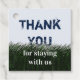 Dites merci à vos invités de location à la maison avec cette étiquette cadeau bon marché. Cet autocollant présente une herbe vert foncé et un "ciel" bleu clair. L'herbe a été peinte et donne de la texture pour permettre aux mots "Merci" de regarder de derrière les lames. Tout le texte peut être facilement customisé pour convenir à votre maison de location ou maison d'été.