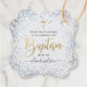 Elégant bleu et or garçon Baptême merci étiquettes. Design avec parties scintillant confetti arrière - plan, croix d'or et script de typographie "Baptême". Cliquez sur customiser plus loin pour modifier/modifier ce modèle.