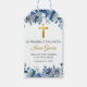 Celebra tu Primera Comunión con elegancia usando esta etiqueta de regalo personalizada adornada con hermosas flores azules y un malade de cruz lindo. Editable y personnalisable, es la manera perfecta de marcar este momento mémorable con familiares y amigos. Disponible en español. Célébrez votre première communion avec élégance en utilisant cette étiquette cadeau personnalisée ornée de belles fleurs bleues et d'une jolie croix design. Editable et personnalisable, c'est le moyen parfait de marquer ce moment mémorable en famille et entre amis. Disponible en espagnol