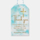 Étiquettes-cadeau Aquarelle bleue Croix or Baptême Merci Favor