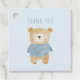 Bienvenue aux invités et ajoutez une touche mémorable à la fête de votre bébé garçon avec cette adorable étiquette de faveur. Doté d'un ours en peluche peint à la main dans le bleu et le beige doux, le design moderne minimaliste mêle fantaisie des animaux des bois et pastels doux et doux. Parfait pour attacher des cadeaux ou des faveurs, le charmant tag dit "Merci" dans un texte bleu amical, vous aidant à express une gratitude sincère tout en accusant votre décoration de fête. Cette étiquette mignonne et polyvalente est une touche de finition agréable pour toute célébration baby shower ou nouveau-né, apportant chaleur et personnalité à votre journée spéciale.