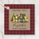 Aquarelle Bois Animaux Baby shower Merci Favor Tag ou étiquette cadeau. Bébé Les animaux comprennent l'ours, le cerf, l'orignal, le raton laveur, le lapin lapin, le renard et la chouette avec en toile de fond des pins. Style Papier Kraft, Pin Vert Forêt, Plaid Buffalo Rouge.