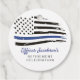 Cette étiquette de faveur de la partie de retraite est dotée d'un drapeau bleu mince en aquarelle et d'un design neutre simple. Cette étiquette ronde peut être utilisée pour célébrer les premiers intervenants de la police ainsi que le personnel de la marine ou de la force aérienne.