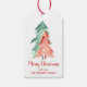 Offrez vos cadeaux de Noël avec ce design moderne minimaliste simple avec une aquarelle abstraite de deux pins en rouge et vert muet. Joyeux Noël est écrit en dessous dans un script rouge et rétro assorti. Vous pouvez facilement personnaliser avec votre nom. Un motif du pin rouge se trouve à l'arrière de l'étiquette.