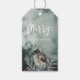 Cette étiquette cadeau présente une belle scène d'hiver aquarelle avec des tons de vert festif et un oiseau douillet niché dans la verdure. Cet article de Noël comprend également un élégant script de joyeux et votre nom. Veuillez consulter cette collection de vacances pour la coordination des articles.