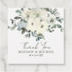 Elégante aquarelle ivoire arrangement floral avec script vert sauge — inclut "Merci" dans la calligraphie moderne, plus les noms de mariée et de mariée et date mariage dans une police moderne élégante. Parfait pour jardin, rustique, extérieur, blanc fleuri, campagne ou élégants mariages printemps-hiver. Des étiquettes de faveur personnalisables, idéales pour la papeterie mariage personnalisée et la décoration do-it-yourself.