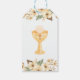 Marca la importancia de la Primera Comunión con esta etiqueta de regalo inspirada en lo religioso, que presenta adorables flores amarillas en acuarela y un malade atractivo de cáliz. Hazlo realmente special personalizando la etiqueta con el nombre del destinatario, la fecha y tu propio mensaje de amor y fe. Disponible en español. Marquez la signification d'une première communion avec cette étiquette-cadeau d'inspiration religieuse qui présente d'adorables fleurs jaune aquarelle et un design de chalice invitant. Faites-le vraiment spécial en customisant le tag avec le nom du destinataire, la date et votre propre message d'amour et de foi. Disponible en espagnol