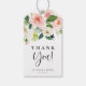 Envoyez un remerciement aux invités et aux clients avec cette étiquette cadeau de remerciement personnalisable. Il présente un bouquet floral aquarelle de fleurs roses et blanches et de verdure. Personnalisez cette étiquette cadeau aquarelle en ajoutant vos propres détails d'événement. Ce tag cadeau de remerciement floral est parfait pour les mariages, douches nuptiales, baby showers et autres événements.