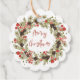 Étiquettes Cadeau Aquarelle mignonne Baies rouges Wreath Joyeux Noël