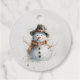 Étiquette de Noël avec peinture à l'aquarelle rétro mignonne d'un bonhomme de neige dans un casquette.