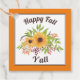 Aquarelle tournesol et baies orange Happy fall Y'all préférence tag. Il présente des tournesols jaunes à l'aquarelle avec des feuilles verts, des feuilles d'automne et des baies. Le texte dit : "Bonne chute Y'all". Il y a une bordure orange autour.