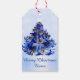 Étiquettes-cadeau Arbre de Noël bleu et flocons de neige