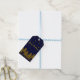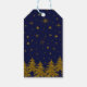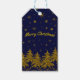 Étiquettes-cadeau Arbre de Noël en or brillant, étoiles, neige sur b