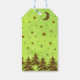 Arbre de Noël étincelant, étoiles sur papier vert abstrait sur étiquette cadeau. Sachez que vous avez une photo !