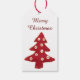 Effet cousu, arbre de Noël rouge avec boutons sur les étiquettes cadeaux de Noël pour customiser avec votre propre texte à l'envers.