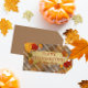 Carte cadeau Thanksgiving personnalisée avec des feuilles et des baies rouges sur un arrière - plan plaid de couleur automne. Au centre de la conception il y a une brosse en or et du texte entièrement personnalisable. Pour le modifier, utilisez l'option Personnaliser. Pour d'autres modifications, telles que les modifications apportées à la police, à la couleur de police ou à la disposition du texte, utilisez l'option Modifier la conception de l'outil.