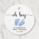 Mignonnes étiquettes de faveur pour votre bébé garçon douche avec "oh garçon" dans un joli script avec des swashes et une aquarelle bleu pastel de pieds bébé. Sous vous pouvez facilement personnaliser avec votre nom et votre date de douche.