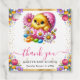 Cet adorable autocollant de remerciement de Pâques présente un poussin duveteux émergeant d'un œuf pastel, entouré d'œufs de Pâques colorés, de marguerites et de fleurs printanières vibrantes. Le doux message "Merci" ajoute une touche personnelle, tandis que les accents dorés joyeux et les couleurs pastel en font le design parfait pour une célébration de baby shower sur le thème du printemps.