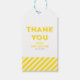 Tag cadeau de rayures jaunes modernes avec le mot "Merci". Personnalisez cette étiquette cadeau avec vos détails tels que votre événement, date, etc. Pour plus d'options comme changer la police et sa taille, cliquez sur le bouton "Customiser". *Veuillez noter que le filigrane Zazzle qui apparaît dans l'aperçu du zoom n'apparaîtra pas sur le produit imprimé final. © Bois de rose et agrumes