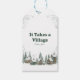 Ajoutez une touche finale personnalisée et cohérente à vos cadeaux ou faveurs de baby shower avec ces charmantes étiquettes-cadeaux Winter Village « Il faut tout un village ». Ces élégantes étiquettes présentent une belle illustration de maisons confortables recouvertes de neige nichées parmi les pins à la base, créant une scène hivernale sereine.