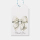 Ajoutez une touche personnelle à vos cadeaux de remerciement de la fête de mariage avec les étiquettes de cadeau de fête de mariage personnalisées avec un nœud blanc. Conçues pour compléter un ensemble d'invitation de mariage avec un nœud élégant, ces étiquettes sophistiquées sont parfaites pour exprimer votre gratitude à vos invités. Avec un design de nœud blanc chic, elles s'alignent parfaitement avec un thème de fête de mariage ou de brunch de mariage précoce et coquette.
