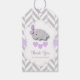 Étiquettes-cadeau Baby shower Merci violet blanc gris éléphant