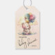 Un ours en peluche mignon et câlin, un tas de ballons, de papillons, des nuages duvoreux et vos détails sont présentés sur ces étiquettes de cadeau de baby-shower. ARTICLES assortis dans notre collection.