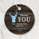 Baby shower rustique cerf thème garçon merci les étiquettes de faveur. Le design est orné d'un arrière - plan en bois de grange foncé et de cerfs bleus aux bois de bois. Une façon parfaite de remercier vos invités.