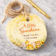 Célébrez votre petit rayon de soleil avec cette étiquette de faveur de baby shower safari mettant en vedette des bébés animaux adorables, des tons dorés chauds et des accents de tournesol joyeux. Le style aquarelle doux mélange les thèmes de soleil et de safari de manière magnifique, ce qui le rend parfait pour les célébrations neutres en matière de genre. Une touche finale charmante pour les faveurs de fête et les détails de remerciement à votre baby shower ensoleillé.