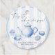 Baby shower à thème Watercolor tea party. Thé bleu aquarelle, tasse de thé, macarons, cupcakes et biscuit.