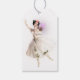 Des étiquettes cadeaux avec une fée brillante avec des ailes de papillon et un doux damas blanc inverse.