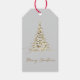 "Faites briller vos cadeaux de vacances avec raffinement en utilisant cette étiquette cadeau de Noël élégante avec un magnifique arbre de Noël doré dressé contre un arrière - plan gris doux. Terminé avec un gracieux script "Joyeux Noël" en feuille d'or, ce design apporte luxe et charme intemporel à votre emballage cadeau de saison. Parfait pour ceux qui aiment l'élégance moderne avec un scintillement festif, ce tag vient compléter l'enveloppement cadeau neutre, or, ou métallisé — idéal pour les cadeaux de vacances personnels, professionnels ou haut de gamme."