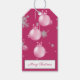 Étirez vos cadeaux de Noël pour leurs récipiendaires cette saison des Fêtes avec une étiquette cadeau d'ornements de Noël rose. Le design de l'étiquette cadeau comprend un trio d'ornements de Noël suspendus avec des flocons de neige en chute et un arrière - plan rose foncé. Autres cadeaux et objets de vacances disponibles avec ce design aussi.