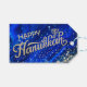 Parties scintillant d'or Happy Hanoukka Gift Tag avec le bleu shimmer arrière - plan