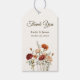Ajoutez une touche réfléchie et élégante à vos faveurs de mariage avec cette étiquette cadeau Rustique Mariage de automne. Conçues avec des roses bordeaux aquarelles, des dahlias oranges brûlées, de la verdure d'eucalyptus et des feuilles d'automne dorées, ces étiquettes complètent parfaitement votre thème mariage d'automne. Entièrement personnalisable, vous pouvez ajouter le nom de votre invité, un court message ou une note de remerciement spéciale. Idéal pour s'attacher à des faveurs, des cadeaux ou des gâteries, ces étiquettes améliorent la présentation de votre célébration mariage avec une esthétique cohésive et romantique. L'impression papier assure une belle finition qui correspond à vos invitations, cartes de place et autres papeteries mariages dans la collection Rustic Mariage de automne.