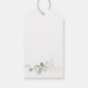 Baptême bébé / Christening Merci tag cadeau. Cette conception présente une illustration de feuillage vert et doré en aquarelle