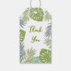 Balise cadeau Merci pour le premier anniversaire décoré avec des images plates de feuilles verts tropicaux.