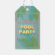 Tag de cadeau Pool Party avec une eau de piscine illustrée et des frondes de palmiers dans un style moderne du milieu du siècle. Les décors comprennent des éléments de blues et de roses, des frondes en feuilles de palme, une piscine et un design rétro. Inclut le modèle pour la personnalisation personnelle.